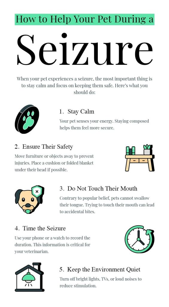 - Seek emergency veterinary care if seizures repeat or worsen