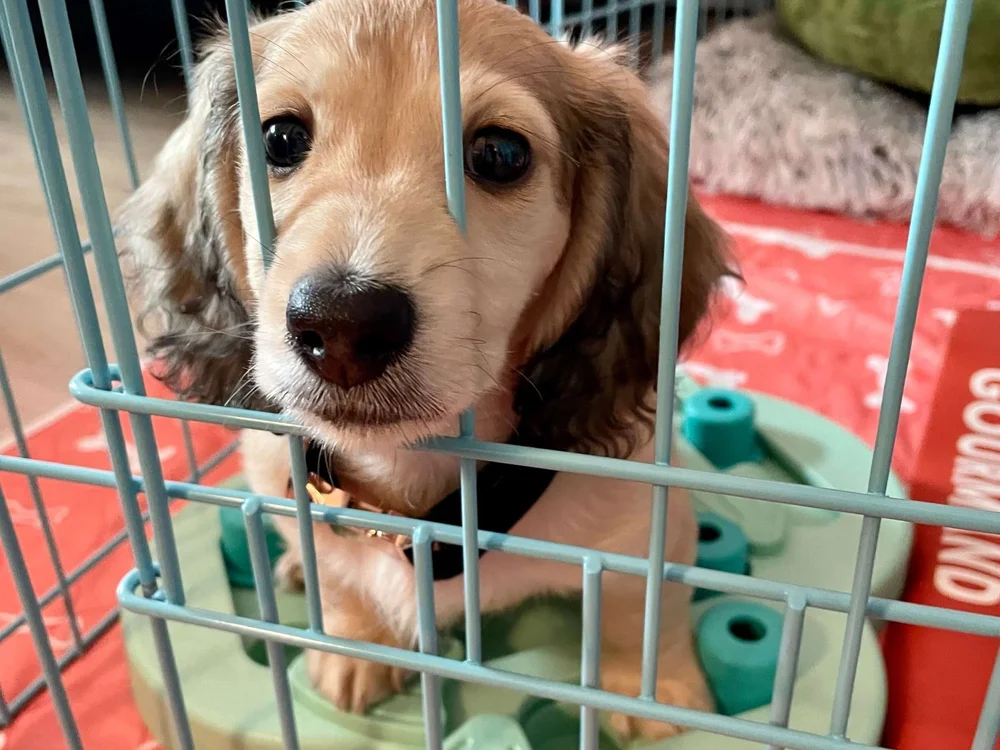 Puppies have small bladders and need frequent breaks. They should only stay in a crate for one hour per month of age. For example, a three-month-old puppy needs about three hours max. Short intervals prevent accidents and anxiety. Puppies need playtime and potty breaks often.